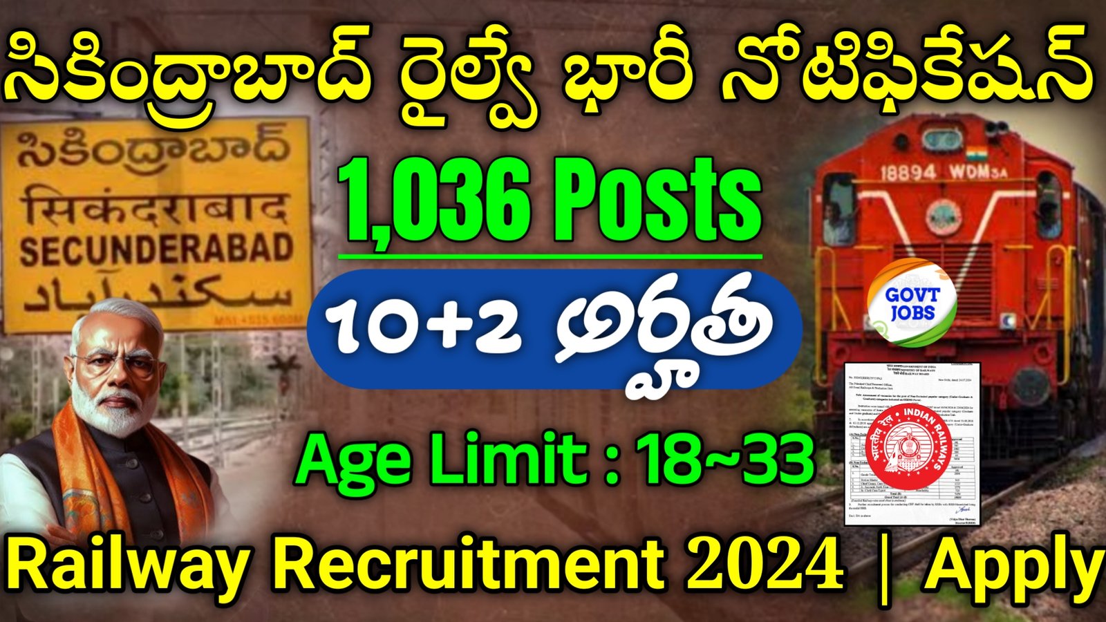 సికింద్రాబాద్ రైల్వే జోన్ తో పాటు ఇతర జోన్స్ అన్ని కలిపి 1,036 పోస్టులకు నోటిఫికేషన్ జారీ చేయడానికి రైల్వే శాఖ ఆమోదం తెలుపుతూ నోటీసు జారీ చేసింది. ఇందులో ల్యాబ్ అసిస్టెంట్ గ్రేడ్ 2, లేబరేటరి అసిస్టెంట్, లైబ్రేరియన్, జూనియర్ ట్రాన్సలేటర్, స్టాఫ్ & వెల్ఫేర్ ఇన్స్పెక్టర్, సైంటిఫిక్ అసిస్టెంట్, టీచింగ్ స్టాఫ్ వంటి పలు రకాల పోస్టులు ఉన్నాయి. 10+2, Any డిగ్రీ అర్హత కలిగిన అభ్యర్థులు ఈ ఉద్యోగాలకు అర్హులు.