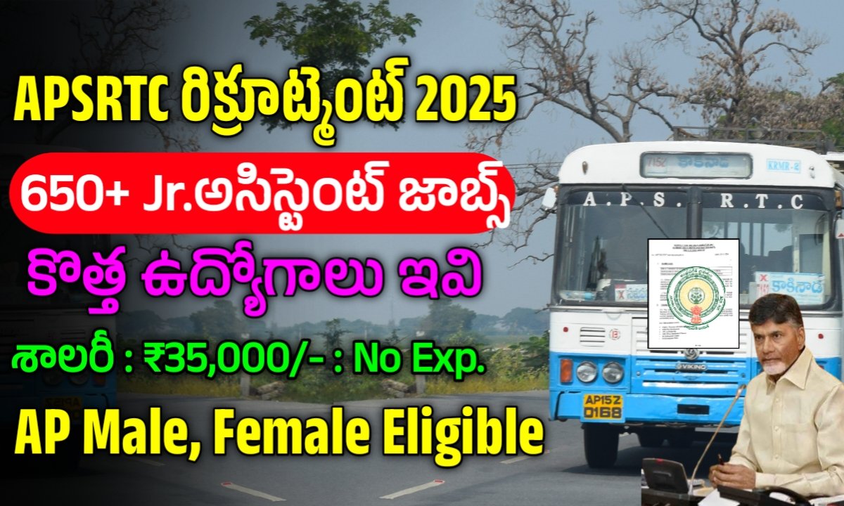 ఏపీలో కొత్త ప్రభుత్వం వచ్చిన తర్వాత ఫ్రీ బస్ స్కీం అమలు చేసే విధంగా కార్యాచరణ ప్రారంబించిన ప్రభుత్వం Rtc లో ఖాళీగా ఉన్న 7,500+ ఉద్యోగాలను భర్తీ చేయడానికి సన్నాహాలు చేస్తోంది. ఇందులో భాగంగా 650 జూనియర్ అసిస్టెంట్ పోస్టులను కూడా భర్తీ చేస్తున్నారు.