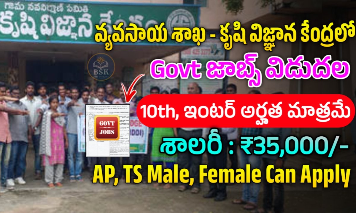 కృషి విజ్ఞాన కేంద్రం నుండి 10th, ఇంటర్, డిగ్రీ అర్హతతో సపోర్టింగ్ స్టాఫ్, స్టెనోగ్రాఫర్ గ్రేడ్ 3, ప్రోగ్రామ్ అసిస్టెంట్, సీనియర్ సైంటిస్ట్ ఉద్యోగాలకు నోటిఫికేషన్ విడుదల చేశారు. వ్యవసాయ శాఖ ఉద్యోగాల రెగ్యులర్ పర్మినెంట్ విధానంలో భర్తీ చేస్తున్నారు.