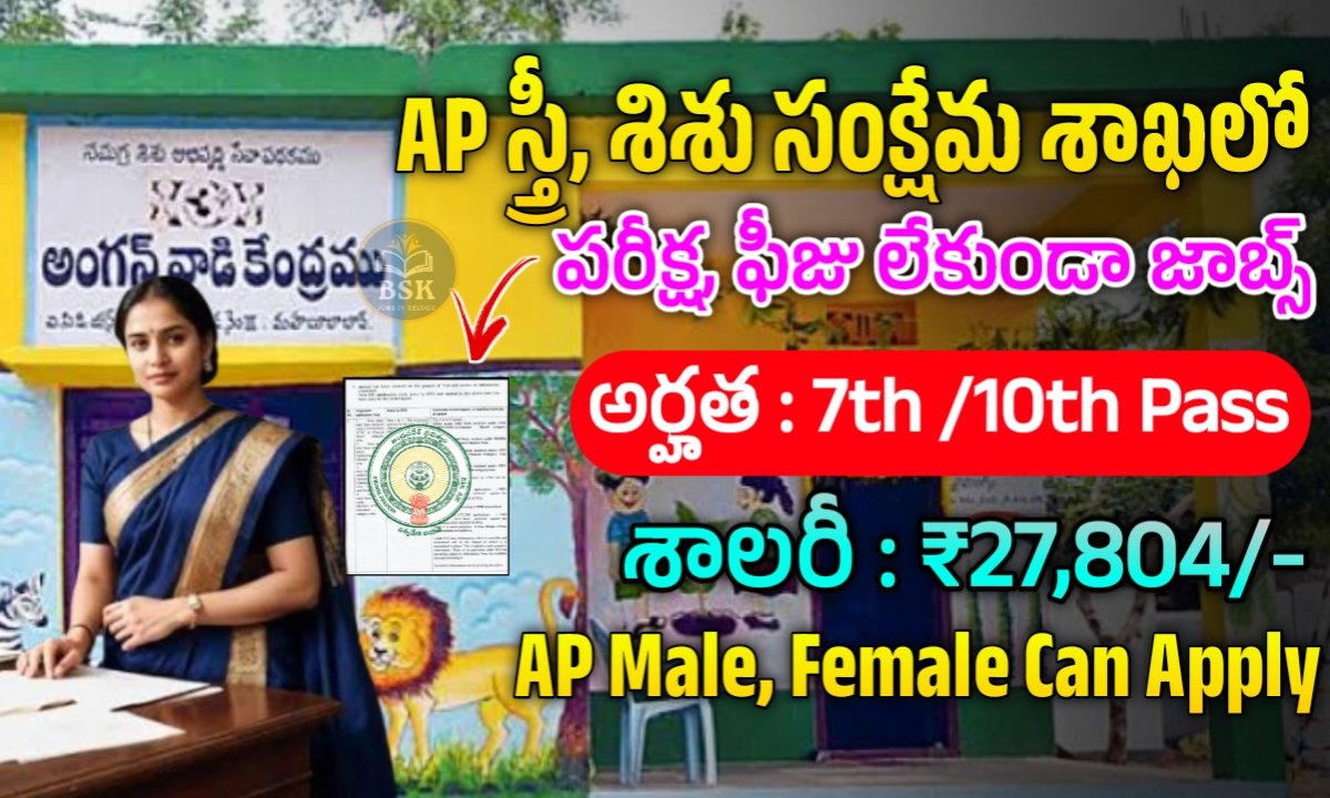 ఆంధ్రప్రదేశ్ స్త్రీ, శిశు సంక్షేమ శాఖ నుండి విడుదలయిన ఈ ఉద్యోగాలకు ఈ క్రింది తేదీలలోగా దరఖాస్తు చేసుకోవాలి.