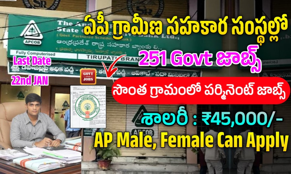 ఆంధ్రప్రదేశ్ జిల్లా కో ఆపరేటివ్ సెంట్రల్ బ్యాంక్స్ 251 ఉద్యోగాలకు ఈ క్రింది తేదీలలోగా దరఖాస్తు చేసుకోవాలి.