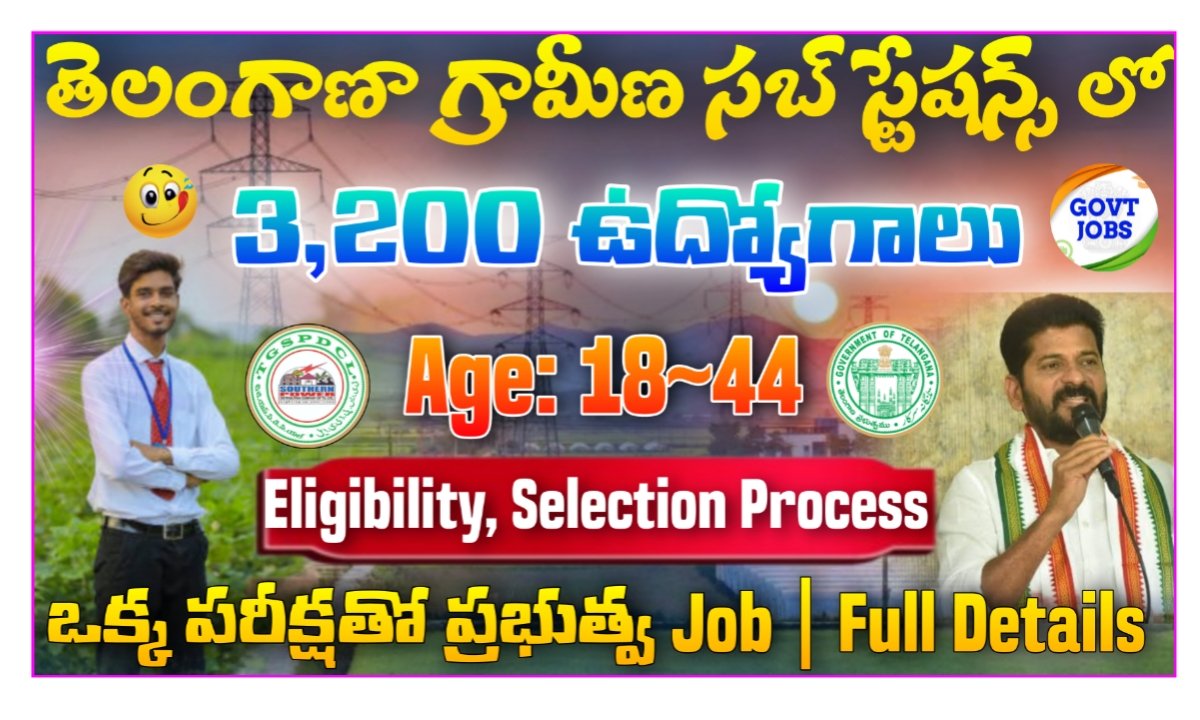 తెలంగాణా రాష్ట్ర విద్యుత్ పంపిణీ సంస్థ TGSPDCL నుండి 3,200 పోస్టులతో గవర్నమెంట్ జాబ్స్ కి సంబందించిన నోటిఫికేషన్ జారీ చేశారు. ఇందులో జూనియర్ లైన్ మెన్ 2,212 పోస్టులు, 30 సబ్ ఇంజనీర్, 18 అసిస్టెంట్ పోస్టులతో పాటు హైదరాబాద్ కేంద్రంగా ఉన్నటువంటి తెలంగాణా విద్యుత్ పంపిణీ సంస్థలో 600 జూనియర్ లైన్ మెన్, 300 సబ్ ఇంజనీర్, 100 అసిస్టెంట్ ఇంజనీర్ పోస్టులను భర్తీ చేస్తున్నారు. ITI ఎలక్ట్రికల్, డిప్లొమా చేసినవారు సబ్ ఇంజనీర్, BE, BTECH అభ్యర్థులు అసిస్టెంట్ ఇంజనీరింగ్ ఉద్యోగాలకు అర్హులు. 18 నుండి 44 సంవత్సరాల మధ్య వయస్సు కలిగినవారు దరఖాస్తు చేసుకోగలరు.