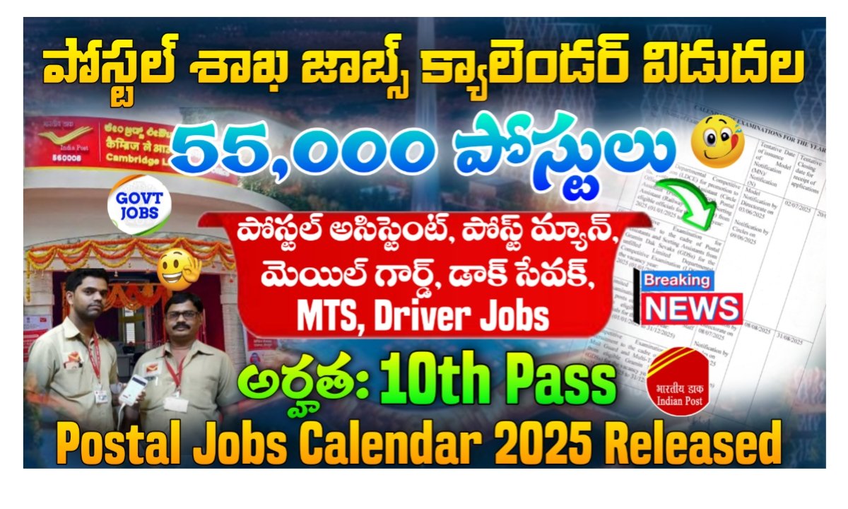పోస్టల్ డిపార్ట్మెంట్ లో ఖాళీగా ఉన్న ఉద్యోగాలను భర్తీ చేయడానికి తపాలా శాఖవారు జాబ్ క్యాలెండర్ 2025 ను విడుదల చేయడం జరిగింది. ఈ జాబ్ క్యాలెండర్ లో డ్రైవర్, LDCE పరీక్ష ద్వారా పోస్టల్ అసిస్టెంట్, సార్టింగ్ అసిస్టెంట్, పోస్ట్ మ్యాన్, మెయిల్ గార్డ్, మల్టీ టాస్కింగ్ స్టాఫ్ పోస్టులకు గ్రామీణ డాక్ సేవక్స్ గా పని చేస్తున్న వారికి ప్రమోషన్స్ ఇవ్వడానికి నోటిఫికేషన్ జారీ చేసి డిపార్ట్మెంటల్ పరీక్ష పెట్టి వారికి ప్రమోషన్స్ ఇస్తారు. అలాగే 48,000+ పోస్టులతో గ్రామీణ డాక్ సేవక్స్ నోటిఫికేషన్ జారీ చేసి 10th అర్హత ఉన్నవారికి ఉద్యోగాలు ఇస్తారు. ఈ రిక్రూట్మెంట్స్ పూర్తి వివరాలు చూసి దరఖాస్తు చేసుకోగలరు.