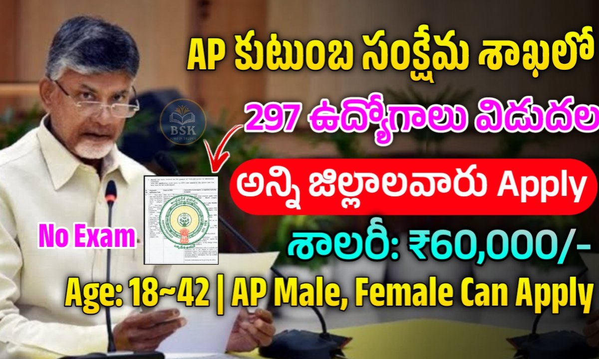 ఏపీలోని కుటుంబ ఆరోగ్య సంక్షేమ శాఖ నుండి 297 పోస్టులతో విడుదలయిన ఉద్యోగాలకు అర్హులైన అభ్యర్థులు ఈ క్రింది తేదీలలోగా దరఖాస్తు చేసుకోగలరు.