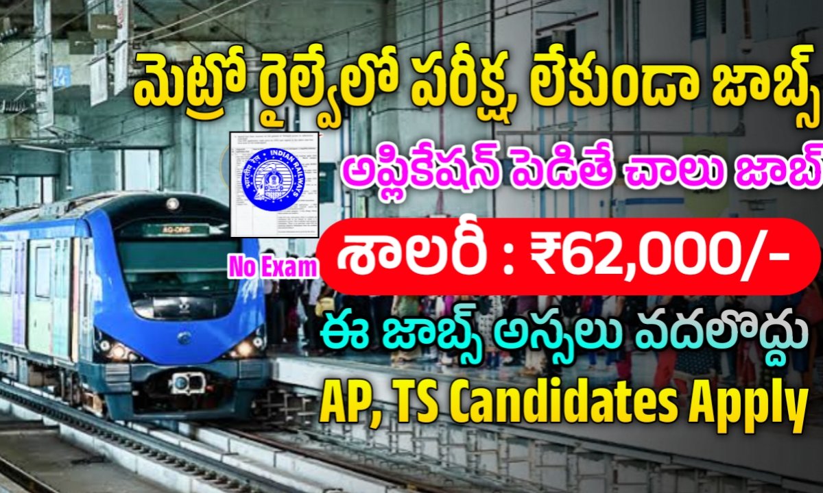 మెట్రో రైల్వే నుండి విడుదలయిన ఉద్యోగాలకు ₹62,000/- శాలరీ చెల్లిస్తారు. ఇతర అన్ని రకాల అలవెన్సెస్ ఉంటాయి.