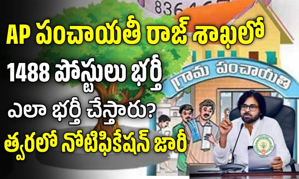 ఆంధ్రప్రదేశ్ పంచాయతీ రాజ్ శాఖలో ఖాళీగా ఉన్న 1488 ఉద్యోగాలకు త్వరలో నోటిఫికేషన్ విడుదల చేసి భర్తీ చేసే ఆలోచనలో ప్రభుత్వం ఉంది. వీటిని కారుణ్య నియమకాల ద్వారా భర్తీ చేసేందుకు అధికారులు ఖాళీలకు సంబందించిన ఫైల్ ని ముఖ్యమంత్రి వద్దకు పంపించడం జరిగింది. ముఖ్యమంత్రి ఆమోదం వచ్చిన వెంటనే రిక్రూట్మెంట్ చేస్తారు.