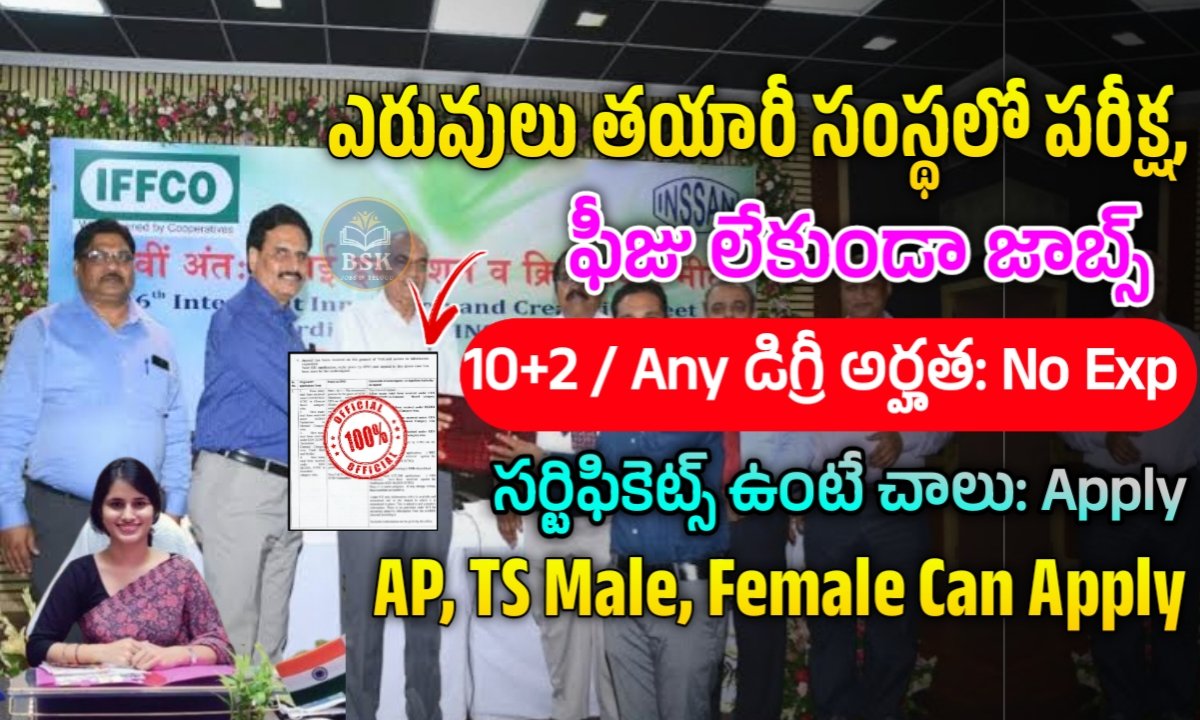 ఎరువులు ఉత్పత్తి చేసే సంస్థ iffco నుండి విడుదలయిన ఉద్యోగాలకు దరఖాస్తు చేసుకున్న అభ్యర్థులకు ఎటువంటి రాత పరీక్ష, ఫీజు లేకుండా మెరిట్ మార్కులు ఆధారంగా, డాక్యుమెంట్స్ వెరిఫికేషన్ చేసి ఉద్యోగాలు ఇస్తారు.
