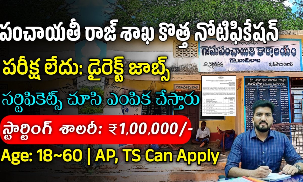 పంచాయతీ రాజ్ డిపార్ట్మెంట్ నుండి విడుదలయిన ఉద్యోగాలకు అర్హతలున్న అభ్యర్థులు ఈ క్రింది నోటిఫికేషన్, అప్లికేషన్ డౌన్లోడ్ చేసుకొని దరఖాస్తు చేసుకోగలరు.