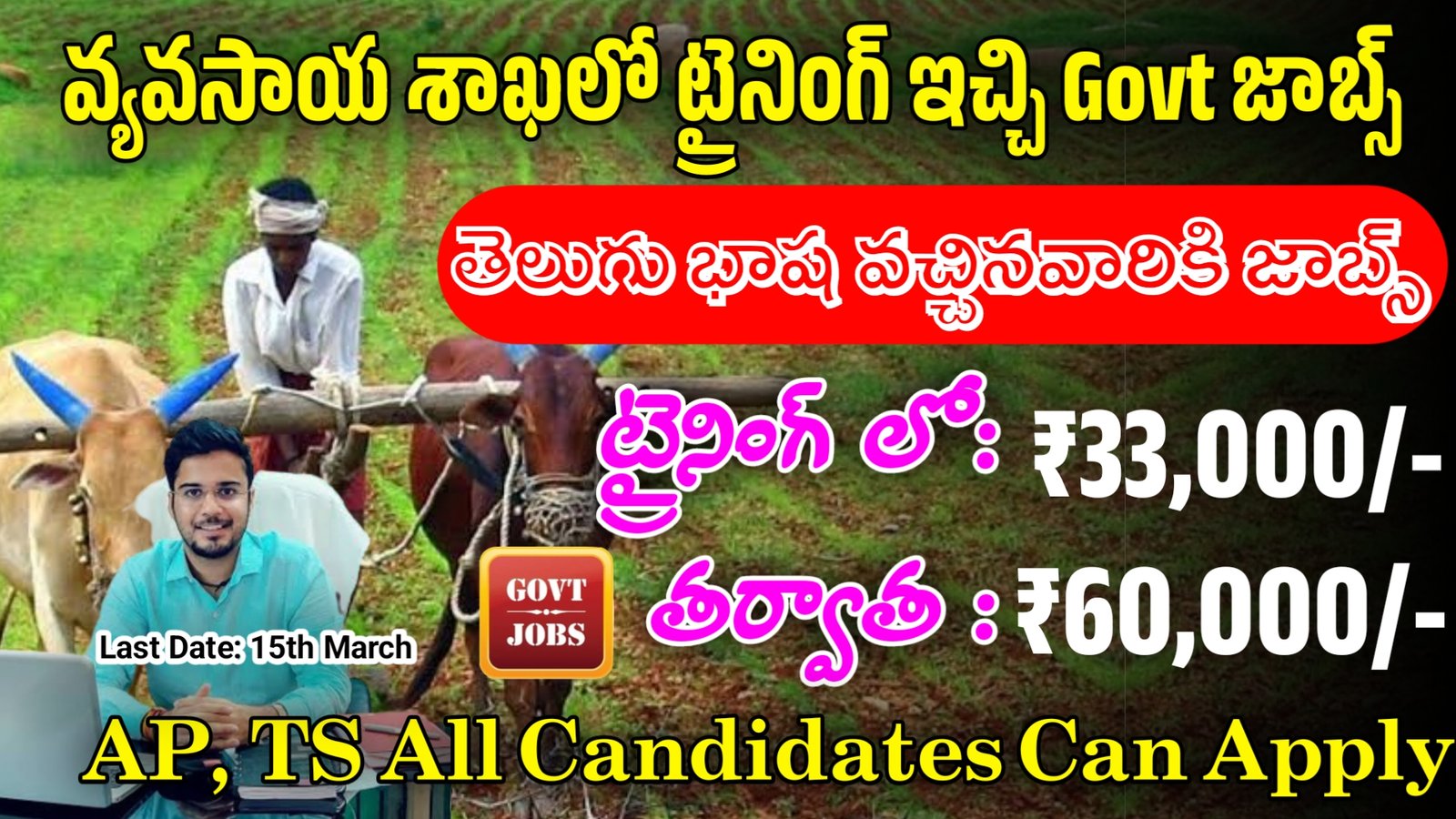 వ్యవసాయ శాఖ ఉద్యోగాలకు సెలెక్ట్ అయిన అభ్యర్థులకు ట్రైనింగ్ లో ₹33,000/- స్టైపెండ్ ఉంటుంది. తర్వాత ₹66,000/- శాలరీ చెల్లిస్తారు. ఇతర అన్ని రకాల అలవెన్సెస్ ఉంటాయి.