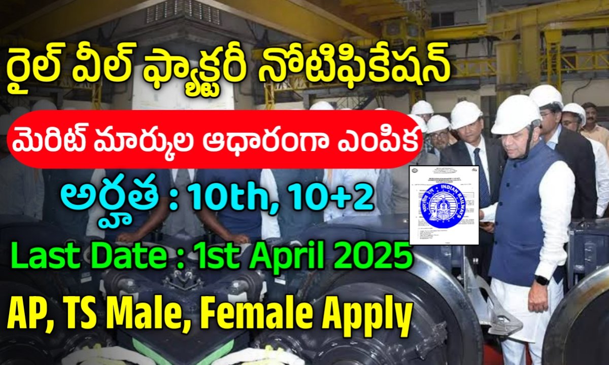 రైల్ వీల్ ఫ్యాక్టరీ పోస్టులకు దరఖాస్తు చేసుకోవడానికి ఈ క్రింది నోటిఫికేషన్, అప్లికేషన్ డౌన్లోడ్ చేసుకొని సబ్మిట్ చేయవలెను.