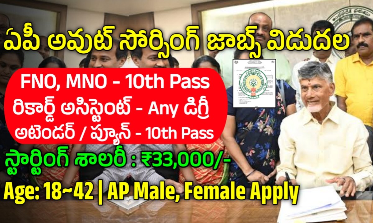 ఆంధ్రప్రదేశ్ అవుట్ సోర్సింగ్ డిపార్ట్మెంట్ నుండి 26 పోస్టులతో రికార్డు అసిస్టెంట్, అటెండర్ MNO, FNO పోస్టులతో నోటిఫికేషన్ జారీ చేశారు. 10th, ఇంటర్, డిగ్రీ అర్హత కలిగి 18 నుండి 42 సంవత్సరాల మధ్య వయస్సు కలిగిన అభ్యర్థులు దరఖాస్తు చేసుకోగలరు. రాత పరీక్ష, ఇంటర్వ్యూ లేకుండా మెరిట్ మార్కులు, డాక్యుమెంట్స్ వెరిఫికేషన్ ఆధారంగా ఎంపిక చేసి ఉద్యోగాలు ఇస్తారు. రిక్రూట్మెంట్ పూర్తి వివరాలు చూసి వెంటనే దరఖాస్తు చేసుకోగలరు.
