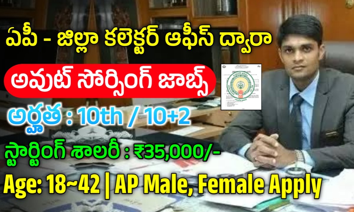 ఆంధ్రప్రదేశ్ జిల్లా కలెక్టర్ కార్యాలయం ద్వారా 31 పోస్ట్ మార్టెమ్ అసిస్టెంట్, ప్లంబర్, జనరల్ డ్యూటీ అటెండర్, ఆఫీస్ సబార్డినేట్, థియేటర్ అసిస్టెంట్, ల్యాబ్ టెక్నీషియన్, రేడియోగ్రాఫర్ పోస్టులను అవుట్ సోర్సింగ్ విధానంలో ఉద్యోగాలను విడుదల చేశారు. 10th, ఇంటర్, డిగ్రీ అర్హత సర్టిఫికెట్స్ కలిగి ఉండాలి