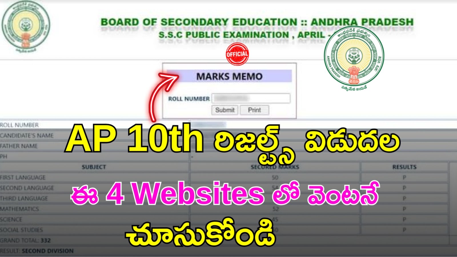 పదో తరగతి విద్యార్థులు వారి యొక్క ఫలితాలను ఈ క్రింది నాలుగు అధికారిక వెబ్సైట్స్ ద్వారా తెలుసుకోవచ్చు.