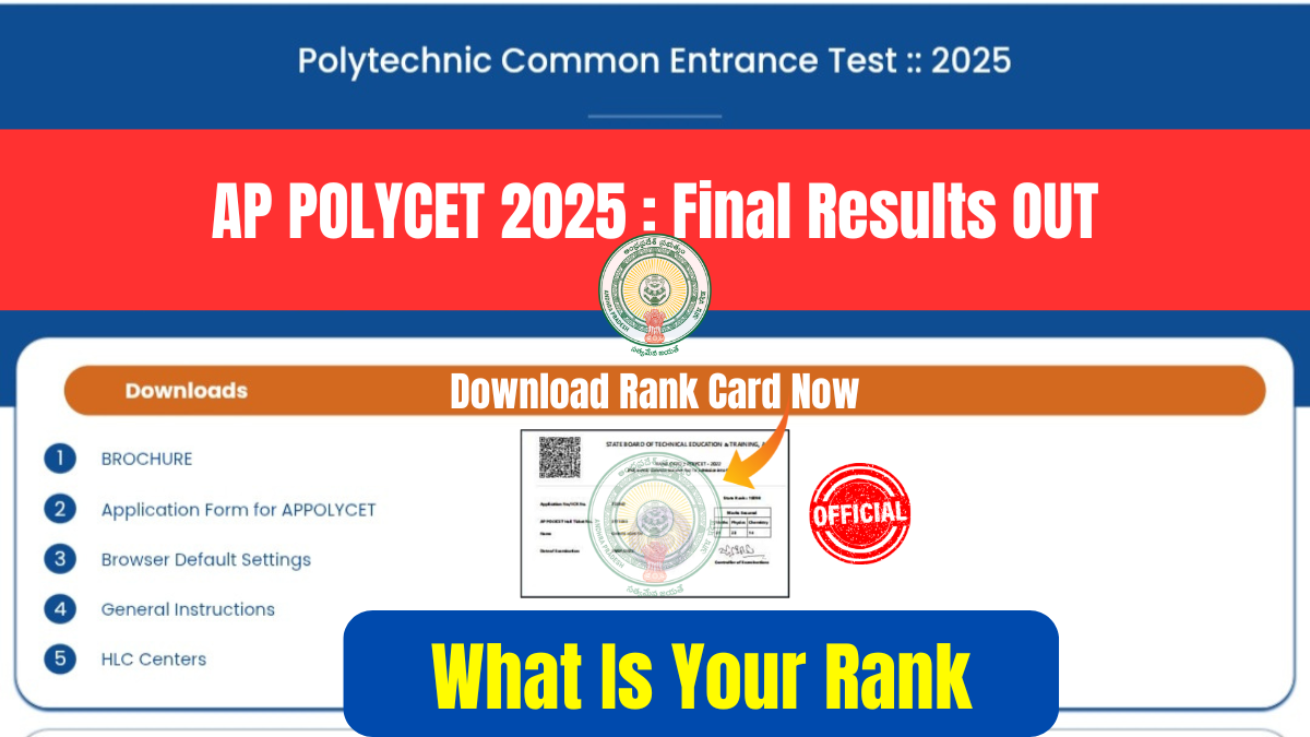 ఏపీ పాలీసెట్ 2025 ఫైనల్ ఫలితాలకు సంబంధించిన ర్యాంక్ కార్డ్ ని ఈ క్రింది విధంగా చాలా సులువుగా డౌన్లోడ్ చేసుకోండి.