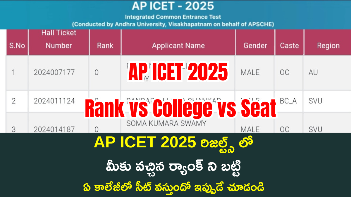 AP ICET 2025 Rank vs College vs Seat: మీకు వచ్చిన ర్యాంకును బట్టి ఏ కాలేజీలో ఏ సీటు వస్తుందో ఇప్పుడే తెలుసుకోండి.