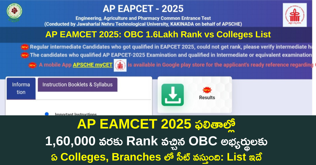 ఎనిమిదో తేదీన ఏపీ ఎంసెట్ 2025 ఫలితాలు విడుదలైన తర్వాత చాలామంది విద్యార్థులు వారికి వచ్చిన ర్యాంక్ ఆధారంగా ఏ కాలేజీలో ఏం బ్రాంచ్ వస్తుందో తెలుసుకోవాలనుకుంటున్నారు. ప్రత్యేకంగా ఓబీసీ అభ్యర్థులు వారికి 1,60,000 ర్యాంకు వచ్చిన వారికి అసలు వారికి సీటు వస్తుందా రాదా, గత సంవత్సరాలలో ఈ ర్యాంకులు వచ్చిన వారికి ఏ కాలేజెస్ లో ఏ బ్రాంచ్ లో సీటు వచ్చింది. గత సంవత్సరాల కౌన్సిలింగ్ డేటా ఆధారంగా ఈ పూర్తి విశ్లేషణ చూసి, ఒక లిస్టు ప్రిపేర్ చేసుకొని కౌన్సిలింగ్ కి సిద్ధంగా ఉండండి.
