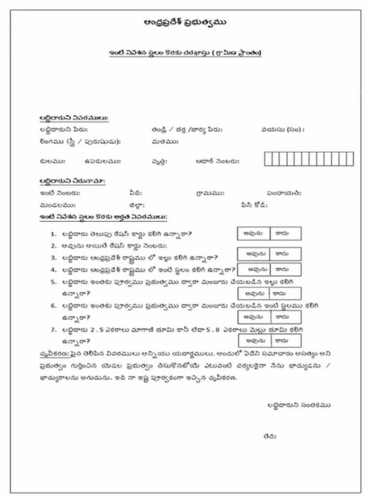 ఏపీ ఉచిత ఇళ్ల పట్టాల దరఖాస్తు ఫారం.