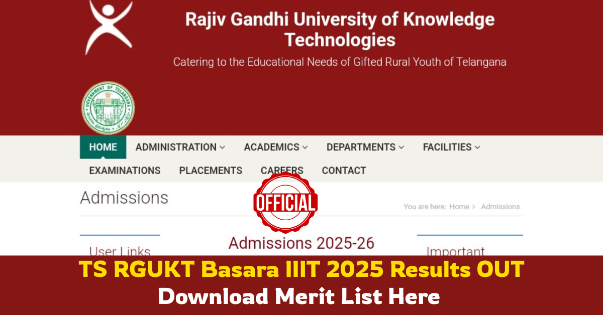 TS RGUKT Basara IIIT 2025 Merit List Release Date & Time: