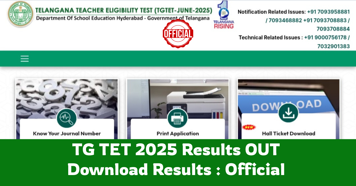 https://tgtet.aptonline.in/tgtet వెబ్సైట్లో ప్రాథమిక కి మరియు ఫలితాలు డౌన్లోడ్ చేసుకోవచ్చు.