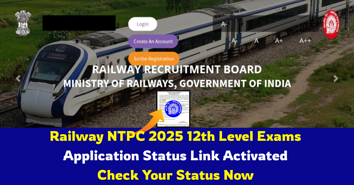 భారత ప్రభుత్వం రైల్వే రిక్రూట్మెంట్ బోర్డ్, గత సంవత్సరం సెప్టెంబర్ లో విడుదల చేసిన రైల్వే ఎన్టిపిసి అండర్ గ్రాడ్యుయేట్ 2024 పోస్టుల భర్తీకి సంబంధించిన నోటిఫికేషన్ కి ఎవరైతే దరఖాస్తు చేసుకున్నారో, వారి యొక్క అప్లికేషన్ స్టేటస్ చెక్ చేసుకోవడానికి సంబంధించిన నోటీస్ ని ఈరోజురైల్వే బోర్డు అధికారులు విడుదల చేశారు.ఆ పరీక్షలకు దరఖాస్తు చేసుకున్న అభ్యర్థులు మీ యొక్క అప్లికేషన్ స్టేటస్ ని జూలై 8, 2025 నుండి చెక్ చేసుకోవాల్సిందిగా కోరడమైనది. దాదాపుగా 4,000 వరకు ఉన్నటువంటి పోస్టులకు సంబంధించి 30 లక్షల మందికి పైగా అభ్యర్థులు దరఖాస్తు చేసుకున్న విషయం తెలిసిందే. ఆగస్టు 8,2025వ తేదీ నుండి కంప్యూటర్ బేస్డ్ పరీక్షలు నిర్వహించనున్నారు. కావున ఈ ఆర్టికల్ ద్వారా మీ యొక్క అప్లికేషన్ స్టేటస్ ని ఎలా చెక్ చేసుకోవాలో చూడండి.