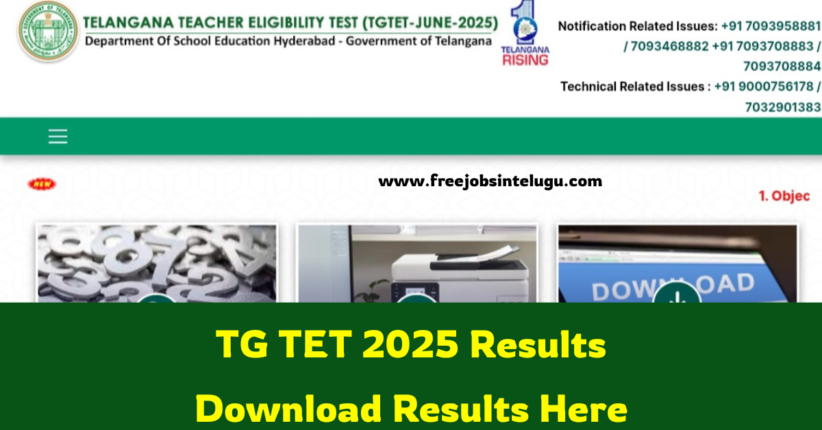 తెలంగాణ టెట్ 2025 జూన్ పరీక్షల యొక్క ఫలితాలను జూలై 22వ తేదీ ఉదయం 11 గంటలకు విడుదల చేయమన్నారు. పరీక్ష రాసిన అభ్యర్థులు తెలంగాణ టెట్ అధికారిక వెబ్సైట్ నుండి అభ్యర్థుల యొక్క మొబైల్ ఫోన్లోనే ఫలితాలను చెక్ చేసుకునే విధంగా అధికారులు అన్ని ఏర్పాట్లు చేశారు. పరీక్ష రాసిన విద్యార్థులు మీ యొక్క ఫలితాలను వెంటనే చెక్ చేసుకోండి.