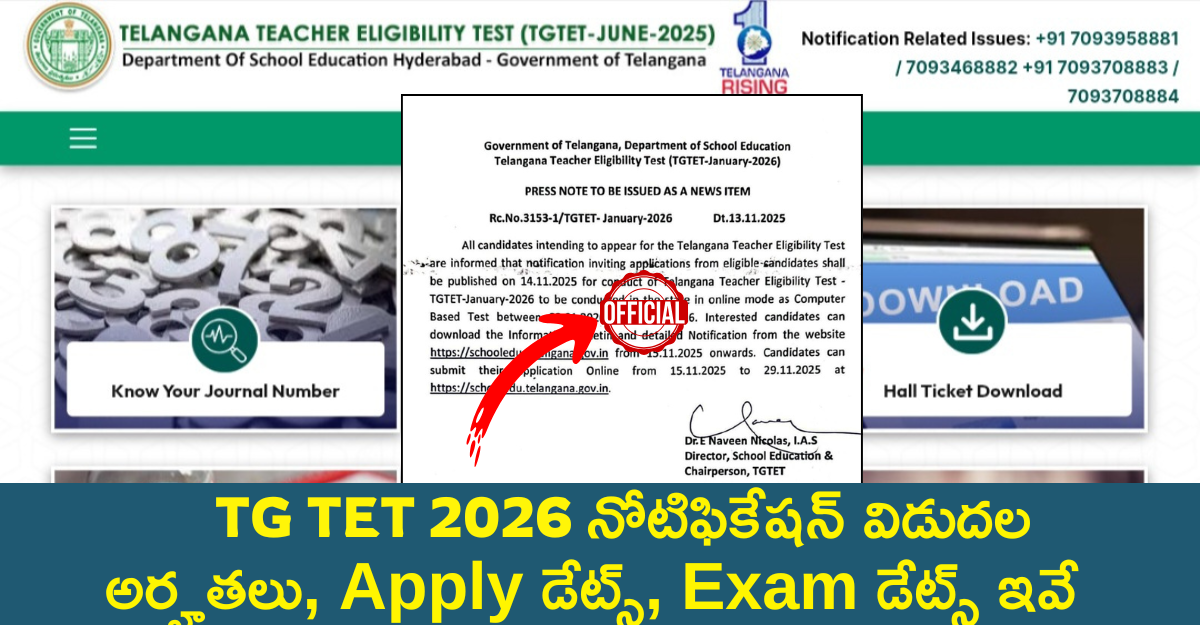 TG TET పరీక్ష తేదీలు3rd జనవరి 2026 నుండి 31st జనవరి 2026 వరకు