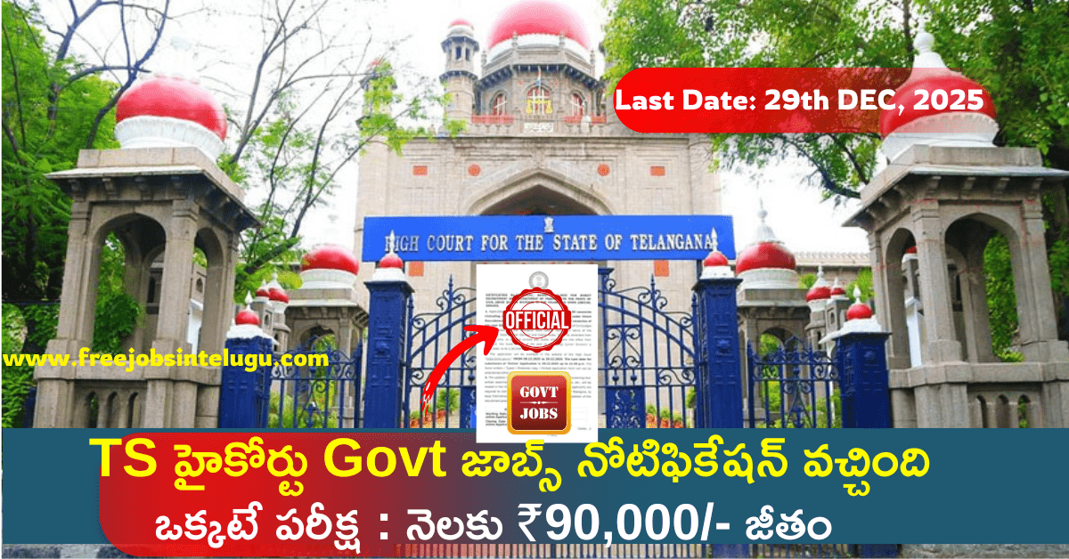 తెలంగాణ హైకోర్టు నుండి 94 సివిల్ జడ్జి పోస్టులను భర్తీ చేయడానికి అధికారికంగా ప్రకటన జారీ చేశారు. ఈ పోస్టులకు 23 నుండి 48 సంవత్సరాల మధ్య వయసు కలిగి, లావు విభాగంలో డిగ్రీ పూర్తి చేసిన వారు దరఖాస్తు చేసుకోవచ్చు. రాత పరీక్ష మరియు వైవా ఇంటర్వ్యూ ద్వారా సెలక్షన్ చేసి అభ్యర్థులను ఎంపిక చేస్తారు. తెలంగాణలోని అన్ని జిల్లాల అభ్యర్థులతో పాటు ఇతర రాష్ట్రాల అభ్యర్థులు కూడా నాన్ లోకల్ లో ఈ పోస్టులకు దరఖాస్తులు చేసుకోవచ్చు. నోటిఫికేషన్ లోని పూర్తి సమాచారం ఈ క్రింది ఆర్టికల్ ద్వారా చూద్దాము.