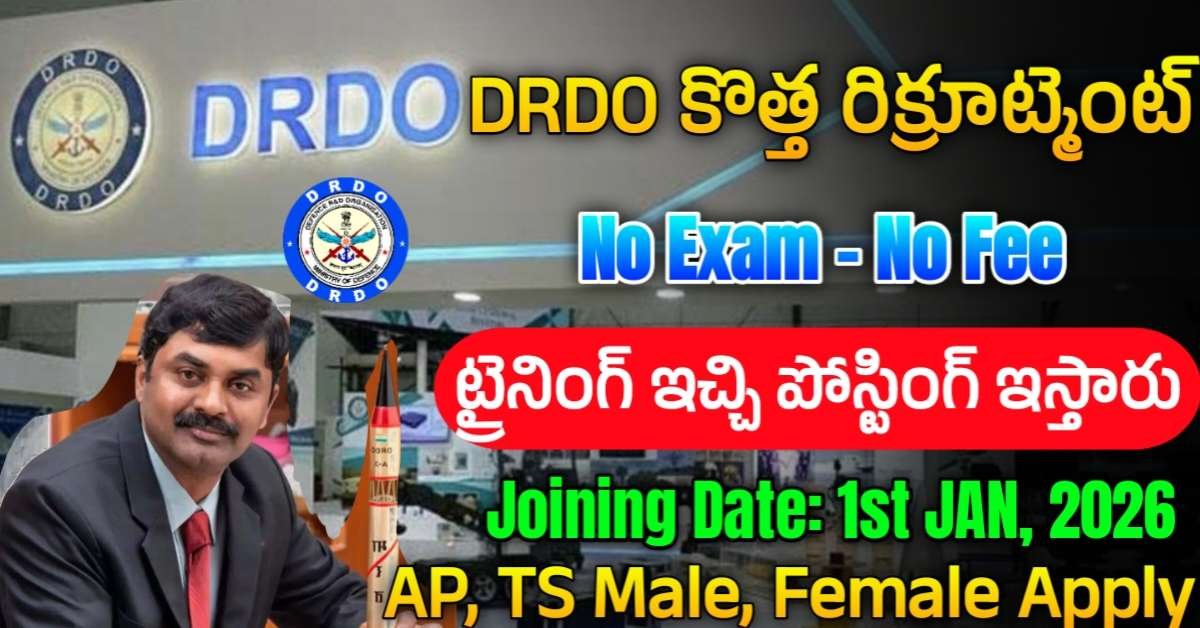 DRDO లో పరీక్ష లేకుండా ట్రైనింగ్ ఇచ్చి ఉద్యోగాలు ఇస్తారు | DRDO Internship Recruitment 2025 | Full Details