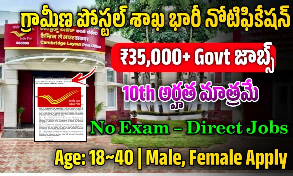 పోస్టల్ డిపార్ట్మెంట్ నుండి పోస్టల్ గ్రామీణ డాగ్ సేవక్ పోస్టులను భర్తీ చేయడానికి, 2026 జనవరిలో షెడ్యూల్ 1 నోటిఫికేషన్ జారీ చేయడానికి పోస్టల్ శాఖ కసరత్తు ప్రారంభించింది. బ్రాంచ్ పోస్ట్ మాస్టర్ అసిస్టెంట్ బ్రాంచ్ పోస్ట్ మాస్టర్ డాగ్స్ పోస్టులను ఈ నోటిఫికేషన్ ద్వారా భర్తీ చేయనున్నారు. పదో తరగతి అర్హత కలిగి 18 నుండి 40 సంవత్సరాల మధ్య వయసు కలిగిన వారు ఈ ఉద్యోగాలకు దరఖాస్తు చేసుకోవచ్చు. ఎటువంటి రాత పరీక్ష లేకుండా పదవ తరగతిలో వచ్చిన మెరిట్ మార్కుల ఆధారంగా సెలక్షన్ చేసి ఈ ఉద్యోగాలు ఇస్తారు. నోటిఫికేషన్ లోని పూర్తి సమాచారం ఇప్పుడు తెలుసుకుందాం.