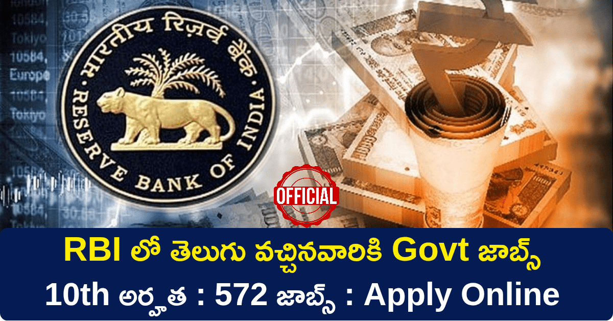 రిజర్వ్ బ్యాంక్ ఆఫ్ ఇండియా నుండి 572 పోస్టులతో విడుదలైన ఉద్యోగాలు సమాచారం క్రింది పట్టికలో చూడండి
