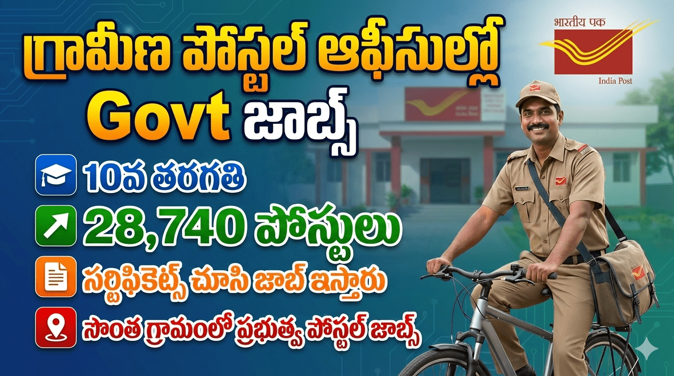 భారతదేశంలోని అన్ని రాష్ట్రాల్లో ఉన్న గ్రామీణ పోస్టల్ ఆఫీసుల్లో పని చేయడానికి 28,740 పోస్టులతో గ్రామీణ డాక్ సేవక్ ఉద్యోగాల నోటిఫికేషన్ విడుదల చేశారు . పదో తరగతి అర్హత కలిగి 18 నుండి 40 సంవత్సరాల మధ్య వయసు కలిగిన వారు ఈ పోస్టల్ జిడిఎస్ ఉద్యోగాలకు దరఖాస్తు చేసుకోవచ్చు. ఎటువంటి రాత పరీక్ష లేకుండా పదో తరగతిలో వచ్చిన మెరిట్ మార్కుల ఆధారంగా అభ్యర్థులను కంప్యూటర్ జనరేటెడ్ మెరిట్ లిస్టు ద్వారా షార్ట్ లిస్టు చేసి ఎంపిక చేస్తారు. నోటిఫికేషన్ యొక్క పూర్తి వివరాలు చూసి వెంటనే ఆన్లైన్ లో దరఖాస్తులు చేసుకోండి.