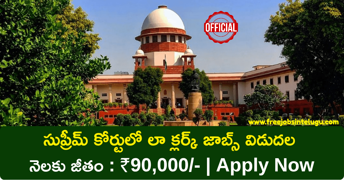 సుప్రీం కోర్ట్ ఆఫ్ ఇండియా నుండి లా క్లర్క్ పోస్టులను భర్తీ చేయడానికి 90 ఖాళీలతో నోటిఫికేషన్ విడుదల చేశారు. ఈ ఉద్యోగాలకు ఆంధ్రప్రదేశ్ మరియు తెలంగాణతో పాటు ఇతర అన్ని రాష్ట్రాల వారు దరఖాస్తులు చేసుకోవచ్చు. బ్యాచిలర్స్ డిగ్రీలో లా చేసి 20 నుండి 32 సంవత్సరాల మధ్య వయసు కలిగిన వారు దరఖాస్తులు చేసుకోవాలి. పార్ట్ 01, పార్ట్ 02 రాత పరీక్షల ద్వారా అభ్యర్థులను ఎంపిక చేస్తారు. మార్చి 7, 2026వ తేదీన అభ్యర్థులకు రాత పరీక్షలు నిర్వహించి ఉద్యోగాలు ఇస్తారు. నోటిఫికేషన్ లోని పూర్తి వివరాలు చూసి వెంటనే దరఖాస్తులు చేసుకోండి.