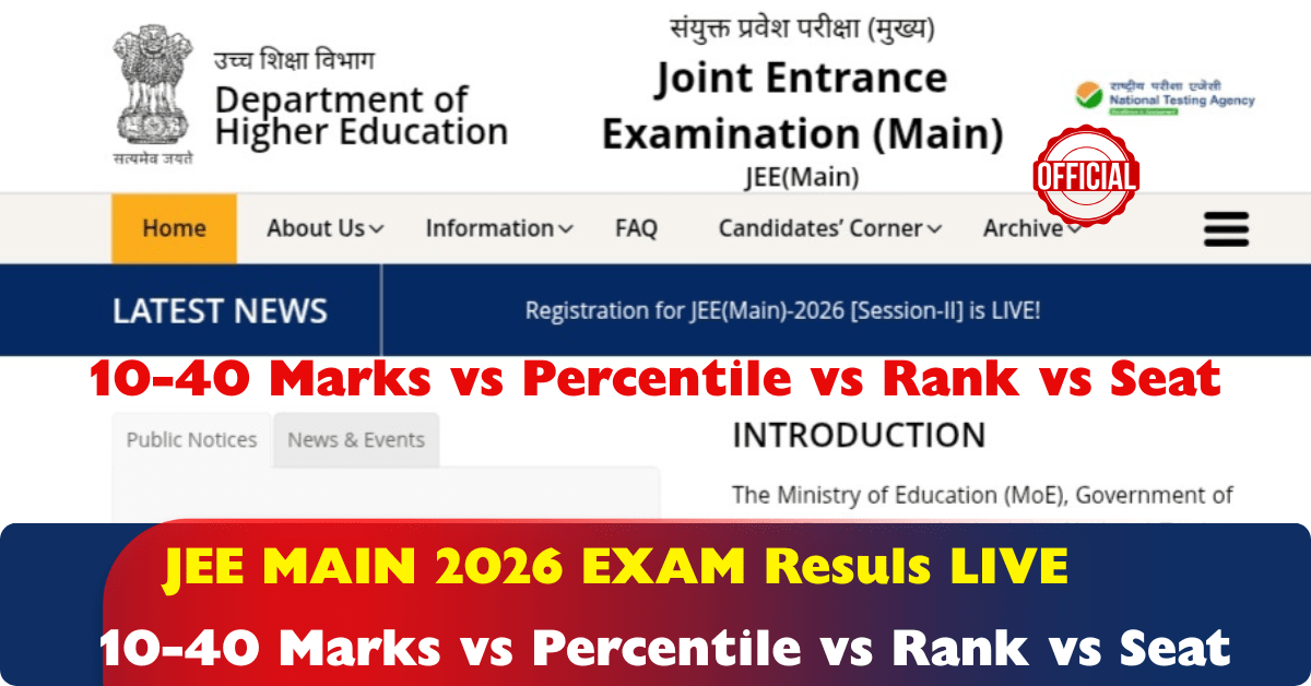 10 – 40 Marks In JEE Main 2026 Session Exam : Expected Percentile, Rank, JEE Advanced Status & College Options | JEE MAINS 2026 Results LIVE