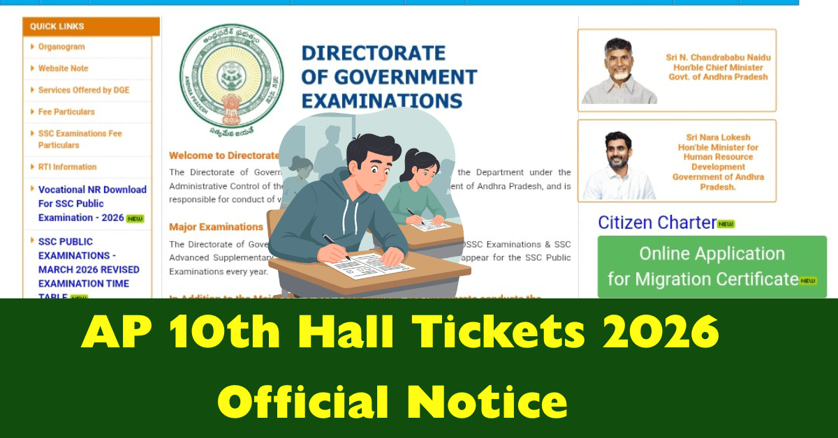 - వెబ్సైట్ హోమ్ పేజీలో “Ap 10th 2026 Hall Tickets Download ” ఆప్షన్ పై క్లిక్ చేయండి.