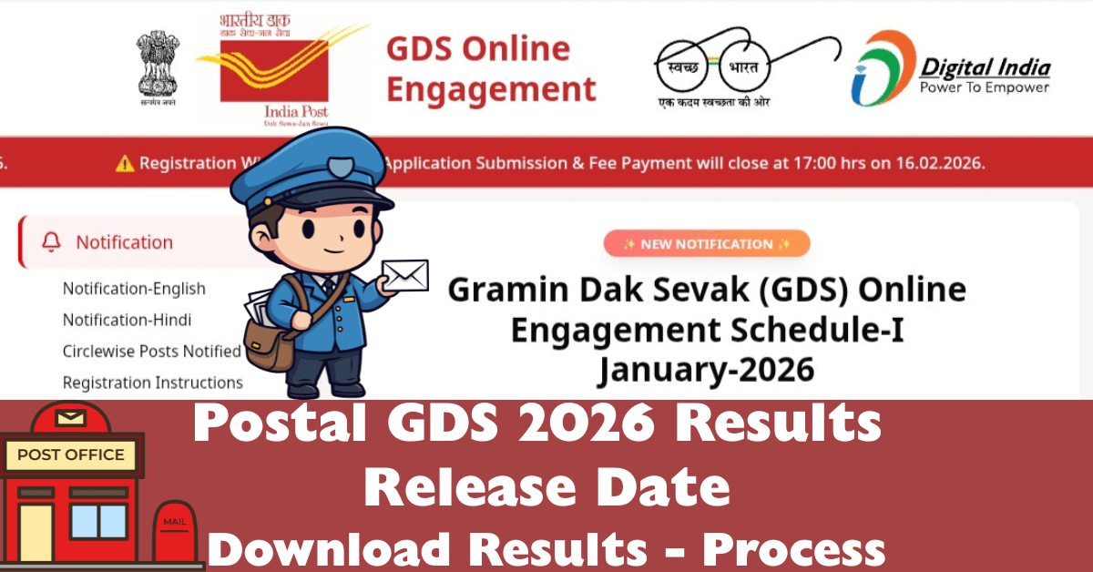 పోస్టల్ గ్రామీణ డాక్ సేవక్ 28,740 ఉద్యోగాలకు దరఖాస్తు చేసుకున్న అభ్యర్థుల యొక్క ఫలితాలను ఫిబ్రవరి 28 2026 తేదీన పోస్టల్ డిపార్ట్మెంట్ విడుదల చేయనుంది. ఈ ఉద్యోగాలకు దరఖాస్తు చేసుకున్న అభ్యర్థులు అధికారిక వెబ్సైట్ నుండి ఫలితాలను డౌన్లోడ్ చేసుకోవచ్చు. పోస్టల్ జిడిఎస్ షెడ్యూల్ 1, 2026 నోటిఫికేషన్ యొక్క ముఖ్యమైన తేదీలను ఈ క్రింది పట్టికలో చూడండి.