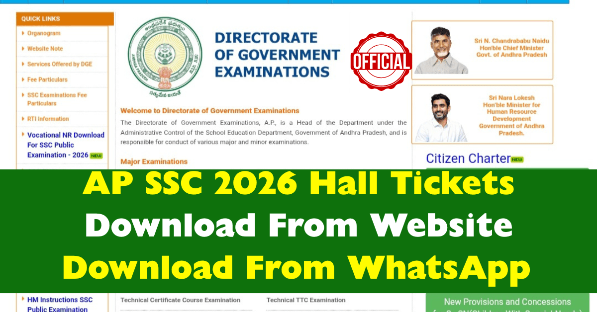 ఆంధ్రప్రదేశ్ సెకండరీ స్కూల్ ఎడ్యుకేషన్ డిపార్ట్మెంట్ వారు మార్చి 16వ తేదీ నుండి నిర్వహించే పదవ తరగతి పరీక్షలకు సంబంధించినటువంటి హాల్ టికెట్లను మార్చి మొదటి వారంలో విడుదల చేయనున్నారు. ఈ పదవ తరగతి పరీక్షలను రాష్ట్రవ్యాప్తంగా దాదాపు 9 లక్షల మందికి పైగా విద్యార్థులు వ్రాయమన్నారు. పరీక్షలు రాయబోయే విద్యార్థులు వారి యొక్క హాల్ టికెట్లను SSC బోర్డు వెబ్సైట్ నుండి గాని లేదా వాట్సాప్ లో మనమిత్ర వాట్సాప్ సర్వీసెస్ ద్వారా డౌన్లోడ్ చేసుకునే సౌకర్యం కల్పిస్తున్నారు. పదవ తరగతి హాల్ టికెట్లను ఎలా డౌన్లోడ్ చేసుకోవాలో ఈ ఆర్టికల్ ద్వారా పూర్తి సమాచారం చూద్దాం.