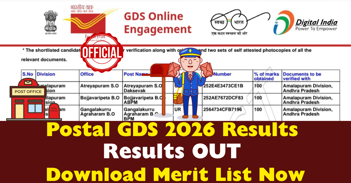 పోస్టల్ జిడిఎస్ 2026 మొదటి మెరిట్ లిస్టు ఫలితాలను ఈ క్రింది స్టెప్ బై స్టెప్ ప్రాసెస్ ద్వారా డౌన్లోడ్ చేసుకోండి.