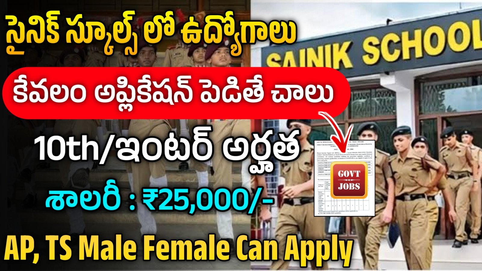 సైనిక్ స్కూళ్లలో పదవ తరగతి అర్హతతో గవర్నమెంట్ జాబ్స్ | Sainik School Jobs Notification 2026 | Full Details – Freejobsintelugu