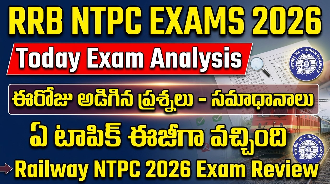 రైల్వే రిక్రూట్మెంట్ బోర్డ్ వారు నాన్ టెక్నికల్ పాపులర్ కేటగిరి (RRB NTPC) 2026 పరీక్షలకు సంబంధించి మార్చి 16వ తేదీ నుండి మార్చ్ 27వ తేదీ వరకు రోజుకి మూడు షిఫ్ట్లవారిగా పరీక్షలు నిర్వహించిన విషయం తెలిసిందే. అయితే పరీక్షలు ఈరోజు నుండి ప్రారంభం కానున్నాయి. ఈరోజు జరిగిన మొదటి శుక్ల అడిగిన ప్రశ్నలు, వాటి యొక్క సమాధానం తెలుసుకోవాలని, చాలామంది అభ్యర్థుల్లో ఉంటుంది. ఈ ఆర్టికల్ ద్వారా రైల్వే ఎన్ టి పి సి 2026 పరీక్షలు అడిగినటువంటి ప్రశ్నల యొక్క సమాచారం ఇప్పుడు చూద్దాం.