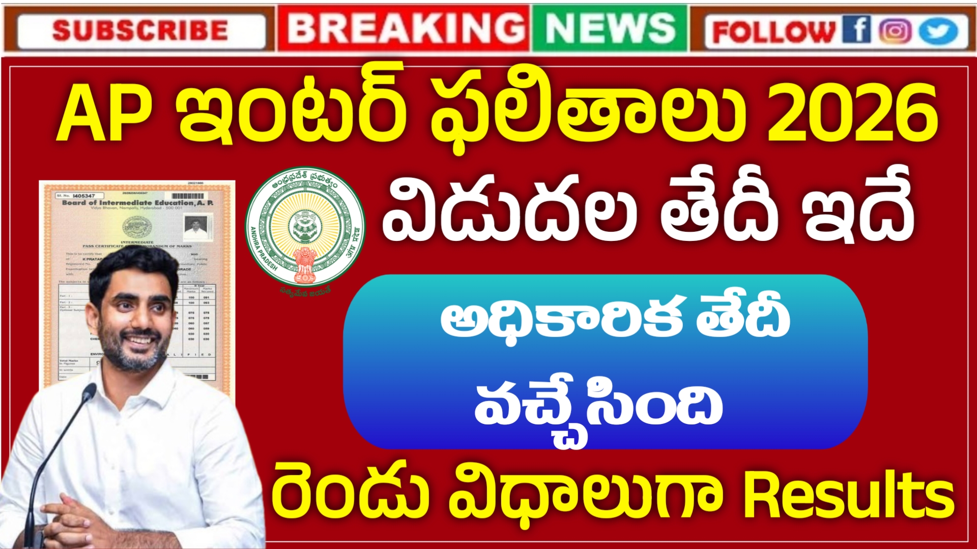 AP Inter Results 2026 Date : ఏపీ ఇంటర్మీడియట్ 2026 పరీక్షల విడుదల తేదీ ఇదే – పూర్తి వివరాలు
