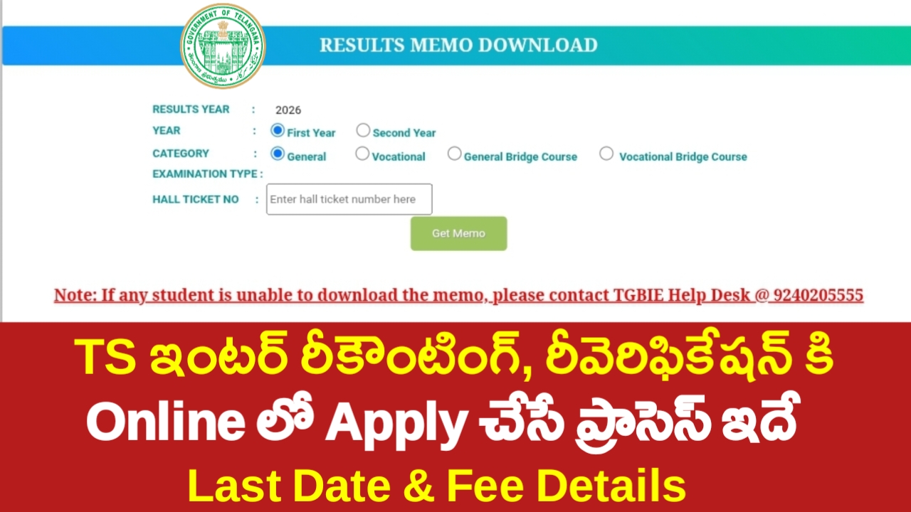 TS Inter 2026 Recounting & Reverification Apply Online | TS Inter 2026 Recounting, Reverification Dates & Fee Details