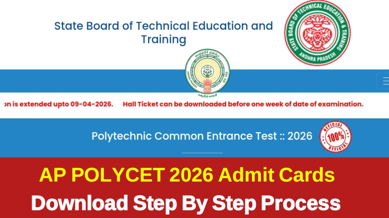 ఆంధ్రప్రదేశ్ పాలిసెట్ 2026 అడ్మిట్ కార్డులను ఈ క్రింది స్టెప్ బై స్టెప్ ప్రాసెస్ ని ఫాలో అవ్వడం ద్వారా వెంటనే డౌన్లోడ్ చేసుకోండి.