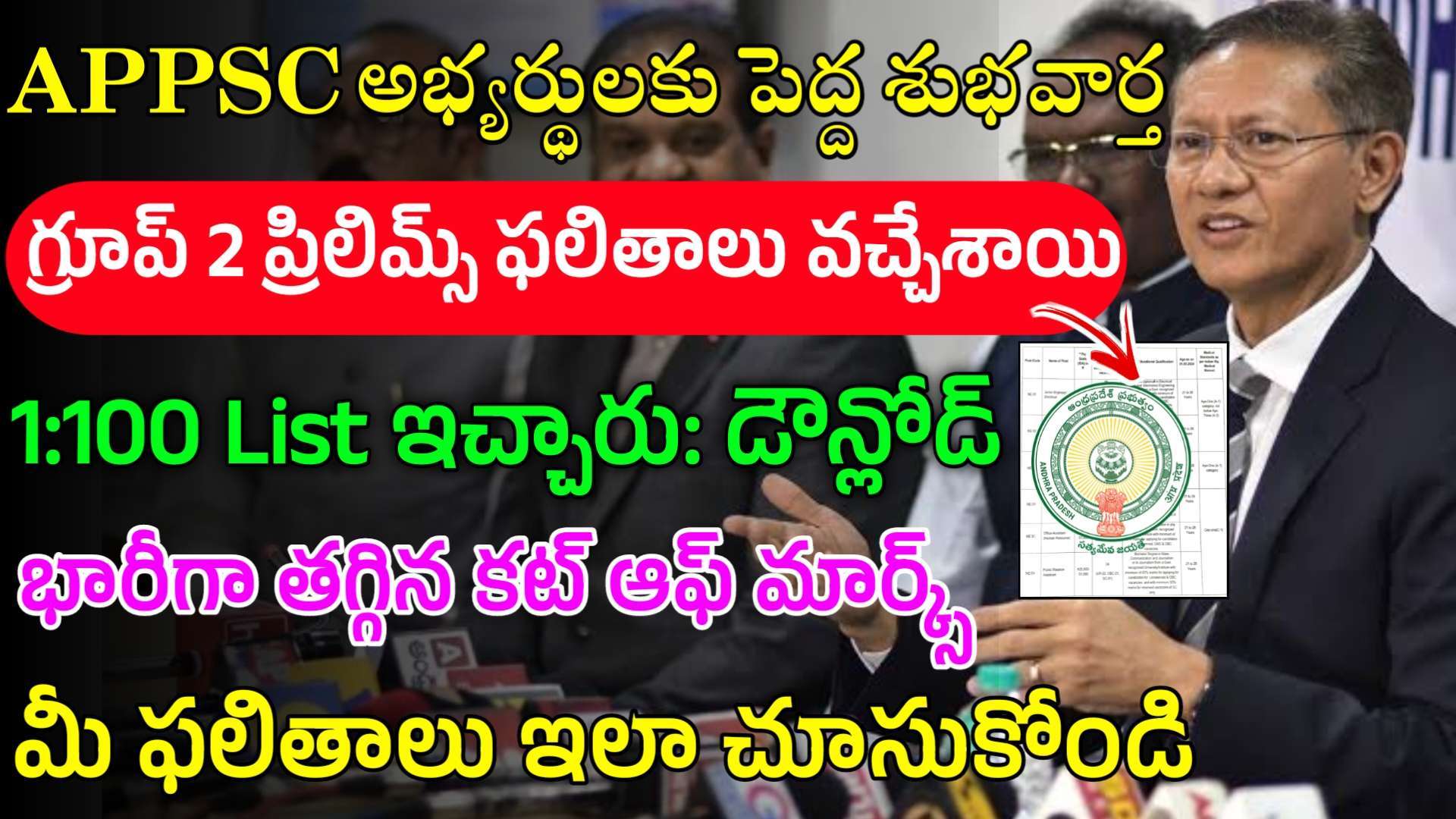 1:100 రేషియోలో గ్రూప్ 2 ప్రిలిమినరీ రేషియోకు సంబంధించిన నిర్ణయాన్ని ఈ రాబోయే వారంలో అధికారికంగా Public Notice విడుదల చేయనున్నట్లు Appsc members లో ఒకరైనటువంటి పరిగె సుధీర్ గారు ఈరోజు ఆయన TWITTER Post ద్వారా తెలియజేశారు