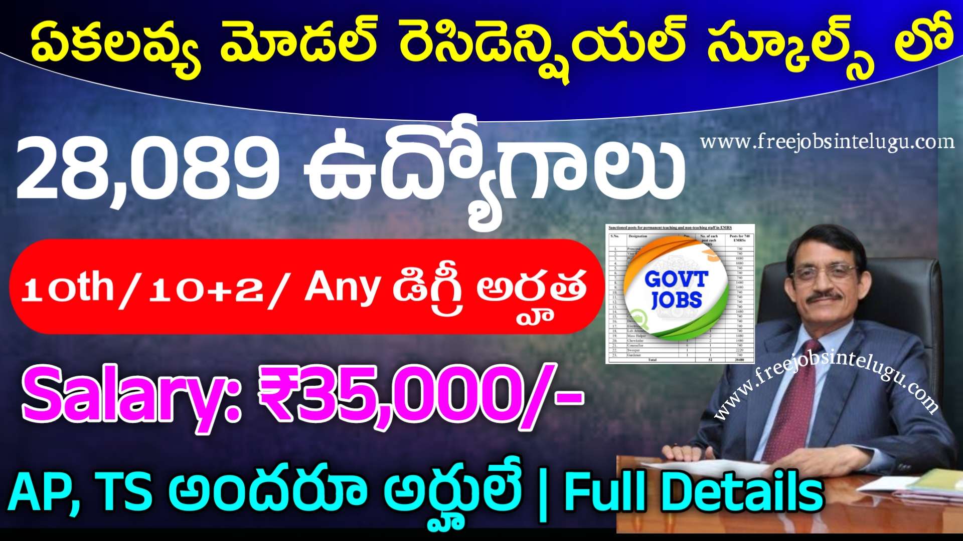 Hello Aspirants.. నిరుద్యోగ అభ్యర్థులకు ప్రముఖ ప్రభుత్వ సంస్థ అయినటువంటి ఏకలవ్య మోడల్ రెసిడెన్సిల్ స్కూల్స్ (EMRS) నుండి 28,089 PGT, TGT, PRR, సచివాలయం అసిస్టెంట్, అటెండర్, ఇతర పోస్టులతో భారీ రిక్రూట్మెంట్ నోటిఫికేషన్ విడుదల కావడం జరిగింది. ఈ రిక్రూట్మెంట్ కి సంబందించిన అర్హతలు, వయస్సు, జీతం, పరీక్ష విధానం వంటి పూర్తి వివరాలు ఈ ఆర్టికల్ చదివిన తెలుసుకొని ఈ గవర్నమెంట్ ఉద్యోగాలకు Apply చెయ్యండి.