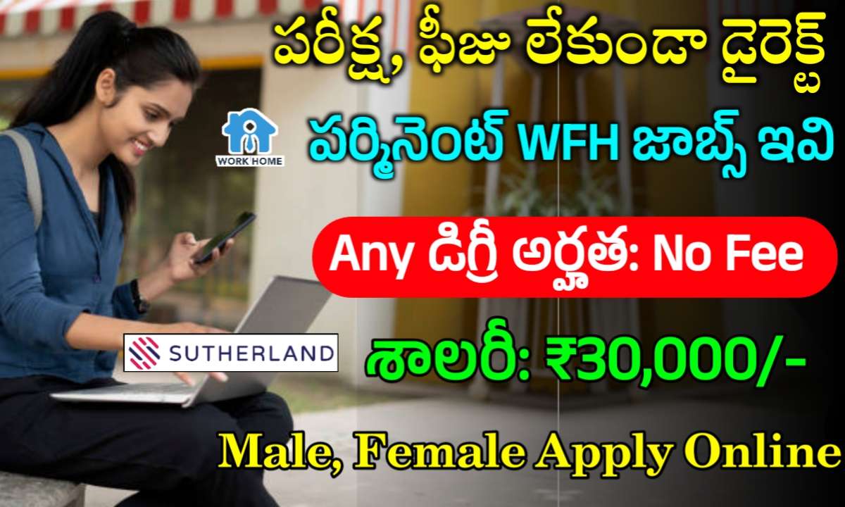 Sutherland సంస్థ నుండి పర్మినెంట్ వర్క్ ఫ్రమ్ హోం జాబ్స్ కి సంబందించిన రిక్రూట్మెంట్ official గా విడుదల కావడం జరిగింది. ఎటువంటి రాత పరీక్ష లేకుండా online లో ఇంటర్వ్యూ ద్వారా సెలక్షన్ చేసి జాబ్స్ ఇస్తారు. ఈ రిక్రూట్మెంట్ పూర్తి వివరాలు చూసి వెంటనే అప్లికేషన్ పెట్టుకోండి.
