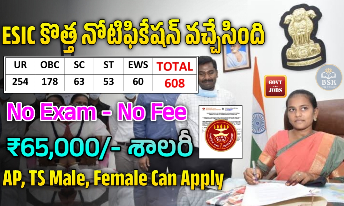 ESIC నుండి 608 పోస్టులతో విడుదలయిన ఈ ఉద్యోగాలకు ఈ క్రింది తేదీలలోగా ఆన్లైన్ లో దరఖాస్తులు చేసుకోగలరు.