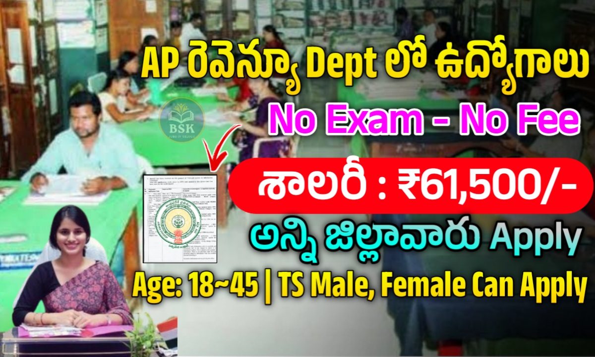 ఏపీ రెవిన్యూ డిపార్ట్మెంట్ ఉద్యోగాలకు అన్ని జిల్లాలవారు Apply చెయ్యొచ్చు.