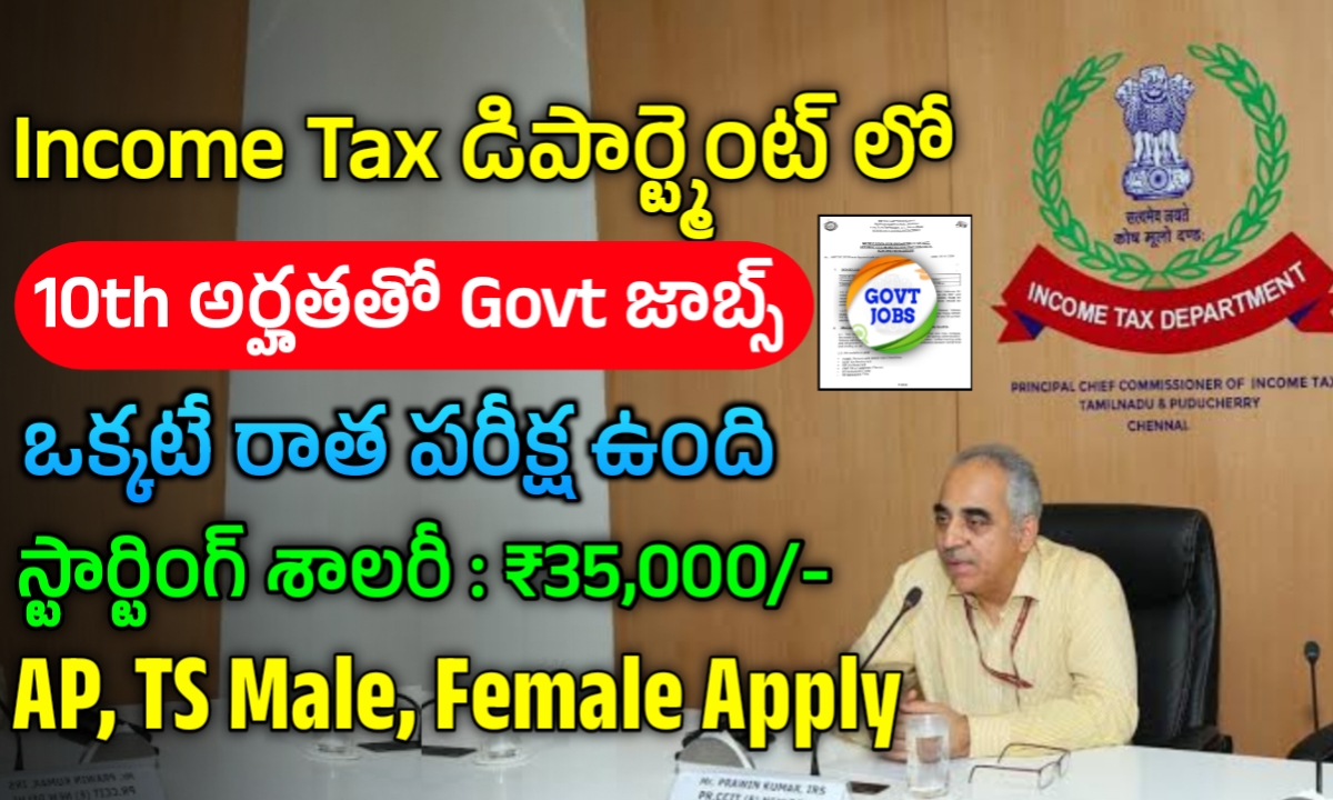 ఇన్కమ్ టాక్స్ డిపార్ట్మెంట్ ఉద్యోగాలకు 10వ తరగతి అర్హత కలిగిన అభ్యర్థులు ఈ క్రింది తేదీలలోగా ఆఫ్ లైన్ విధానంలో దరఖాస్తు చేసుకోగలరు.