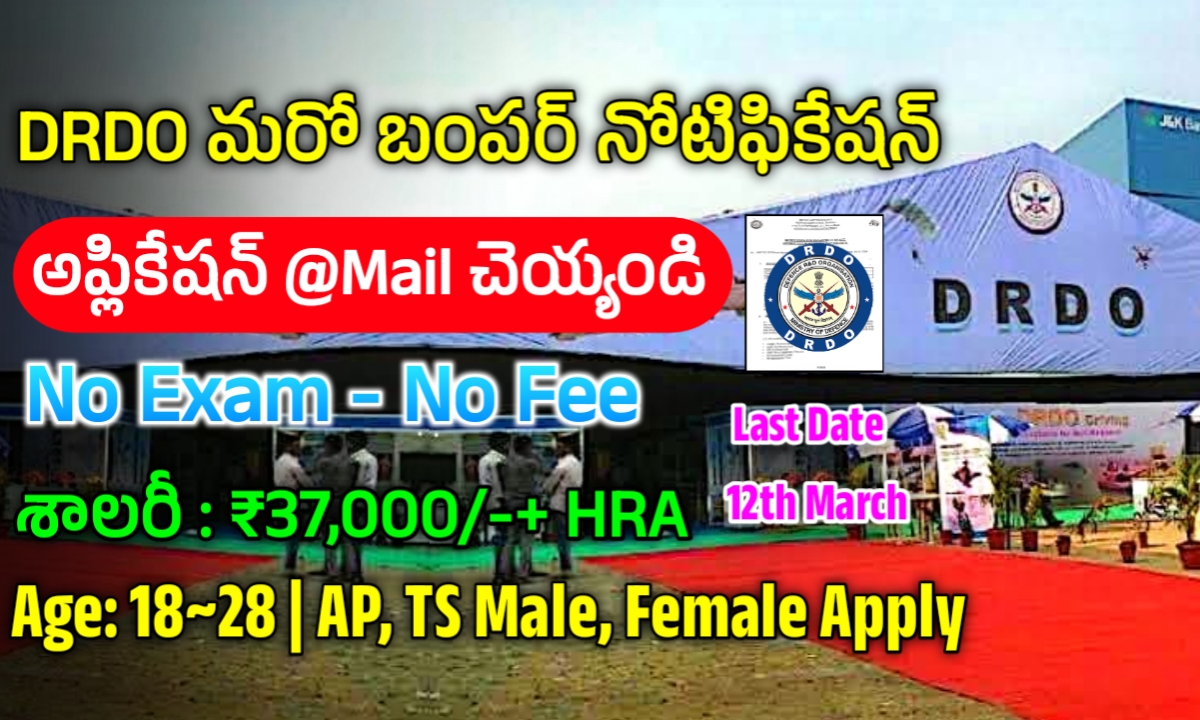 DRDO ఉద్యోగాలకు అర్హతలున్న అభ్యర్థులు 12th మార్చి, 2025 తేదీలోగా నోటిఫికేషన్ లో ఇచ్చిన మెయిల్ అడ్రస్ anjanaur.ade@gov.in కు పంపించవలెను. ఎటువంటి ఫీజు లేదు.