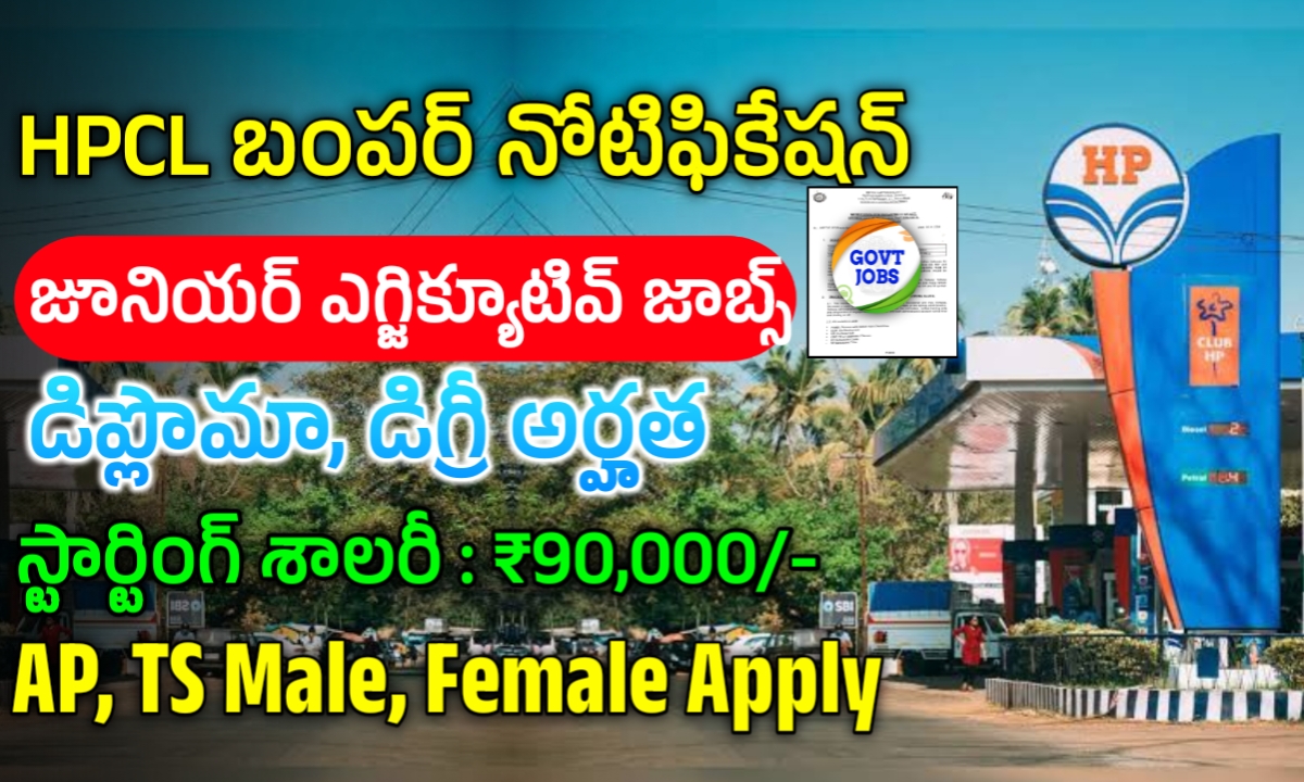 హిందూస్తాన్ పెట్రోలియం కార్పొరేషన్ లిమిటెడ్ నుండి 63 పోస్టులతో జూనియర్ ఎగ్జిక్యూటివ్ పోస్టులను భర్తీ చేయడానికి నోటిఫికేషన్ జారీ చేశారు. ఇంజనీరింగ్ డిప్లొమా, డిగ్రీ అర్హత కలిగిన అభ్యర్థులు అప్లికేషన్ పెట్టుకోవాలి. 18 నుండి 25 సంవత్సరాల మధ్య వయస్సు కలిగిన అభ్యర్థులు దరఖాస్తు చేసుకోవాలి. రాత పరీక్ష, గ్రూప్ డిస్కషన్, స్కిల్ టెస్ట్, పర్సనల్ ఇంటర్వ్యూ, మెడికల్ ఎక్సమినేషన్, PET టెస్ట్ నిర్వహించడం జరుగుతుంది. Hpcl రిక్రూట్మెంట్ పూర్తి వివరాలు చూసి వెంటనే దరఖాస్తు చేసుకోగలరు.